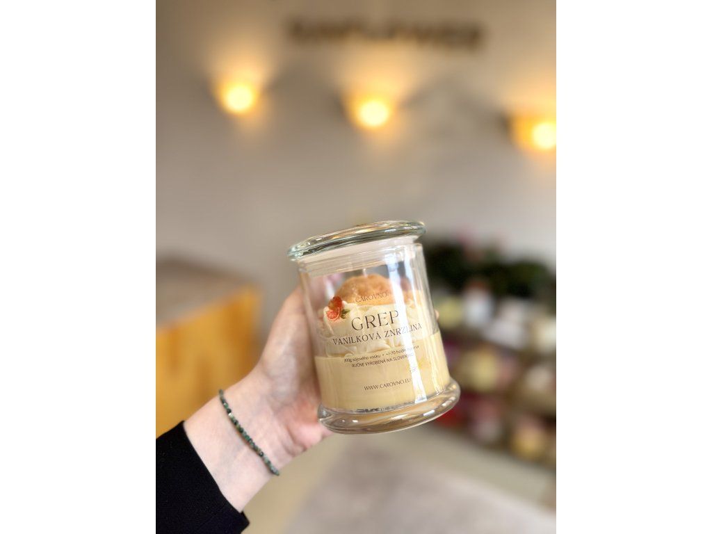 Ručne vyrábaná sójová sviečka, ktorá premení každý priestor na útulné a voňavé miesto. Jemná kombinácia sladkej vanilky a sviežeho grepu vytvára harmonickú vôňu, ktorá pôsobí príjemne, nevtieravo a zároveň luxusne.